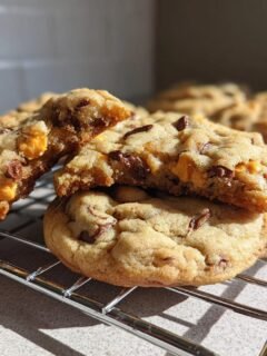 Obwohl die klassische Version mit Zartbitter absolut perfekt ist, kann man ja nie genug Variationen haben, oder? Ich liebe es, wenn ich mehrere Bleche gleichzeitig vorbereite, jedes mit einem anderen Topping. Dann hat jeder bei uns zu Hause ein anderes Lieblingsexemplar im Gefrierschrank.