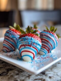 Patriotische Schokoladen-Erdbeeren