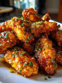 Knusprige Hähnchenstreifen aus der Heißluftfritteuse mit Honig-Butter-Knoblauch