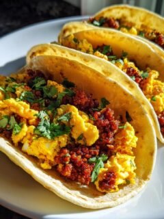 Herzhafte Frühstücks-Tacos im mexikanischen Stil