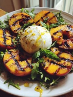 Köstlicher gegrillter Pfirsich Burrata Salat